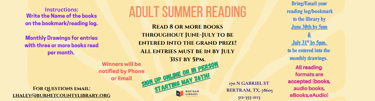 To reserve the meeting room, fill out our application and send to Schalean Druell for approval or call the library at 512-355-2113.